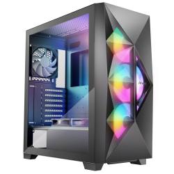 ميزات خاصة: واجهة أمامية شبكية لتعزيز تدفّق الهواء، داشبورد ARGB مدمج، لوح جانبي يُفتح من دون أدوات، غطاء علوي قابل للإزالة