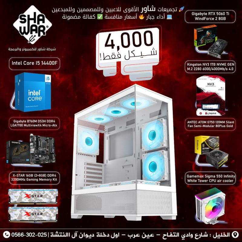 تُعد هذه التجميعة خيارًا استثنائيًا للاعبين والمصممين، حيث تجمع بين معالج الجيل 14 القوي وبطاقة رسومية من الجيل التالي RTX 5060 Ti، كل ذلك بسعر تنافسي وتصميم أبيض فاخر.