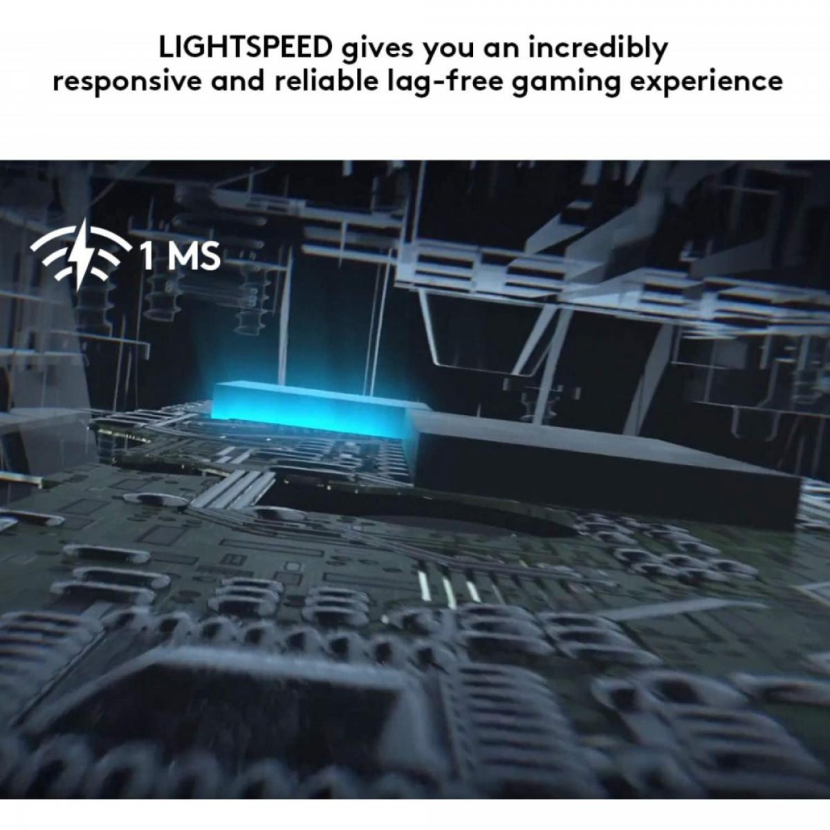 • تقنية LIGHTSPEED اللاسلكية: استجابة فائقة السرعة تبلغ 1 مللي ثانية، تضاهي سرعة الماوسات السلكية.