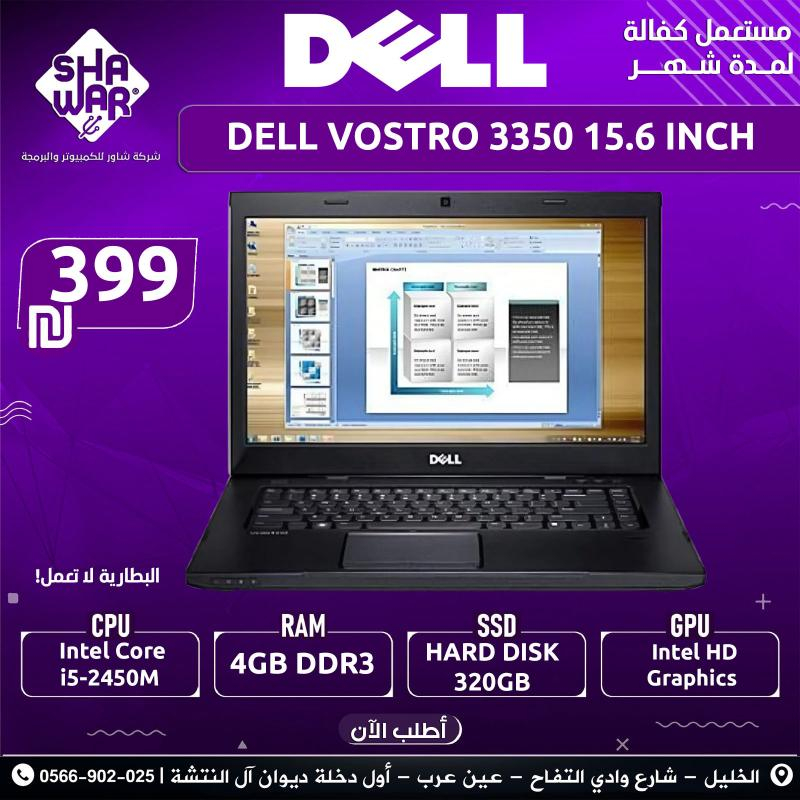 هل تبحث عن جهاز قوي، كبير الشاشة، ومناسب للعمل المكتبي الثابت؟ لابتوب Dell Vostro 3350 يمنحك شاشة واسعة 15.6 إنش وأداء مستقر بـ Intel Core i5-2450M بسعر استثنائي!
