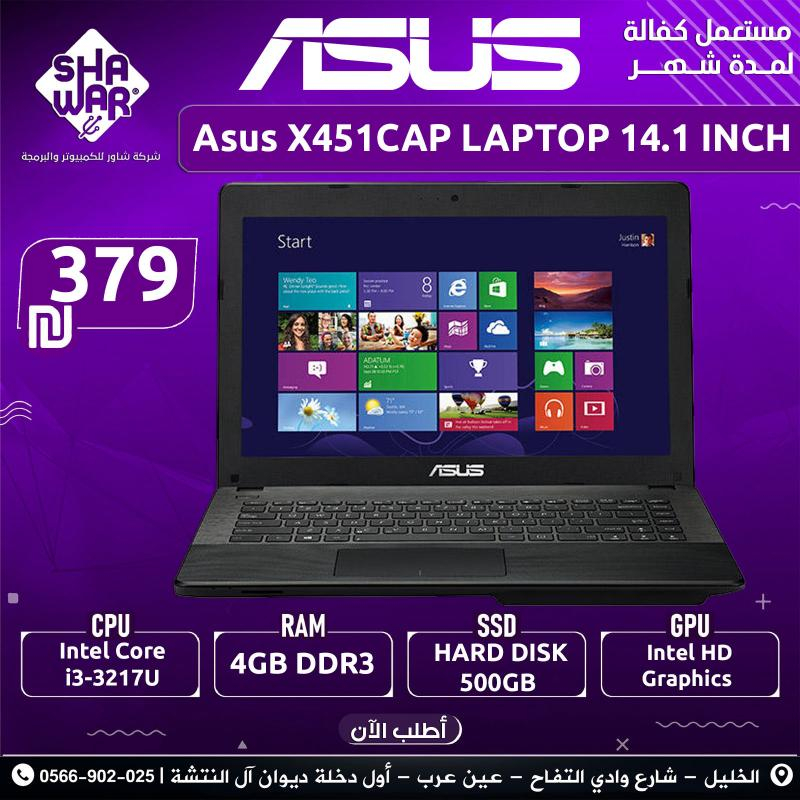 لابتوب ASUS X451CAP هو التوازن الذي تبحث عنه بين الأداء والسعر! بحجم شاشة 14.1 إنش، يمنحك سهولة حمل لابتوبات النوت بوك مع مساحة عمل مريحة. معالج Intel Core i3 يضمن لك أداءً موثوقاً للعمل والدراسة اليومية.