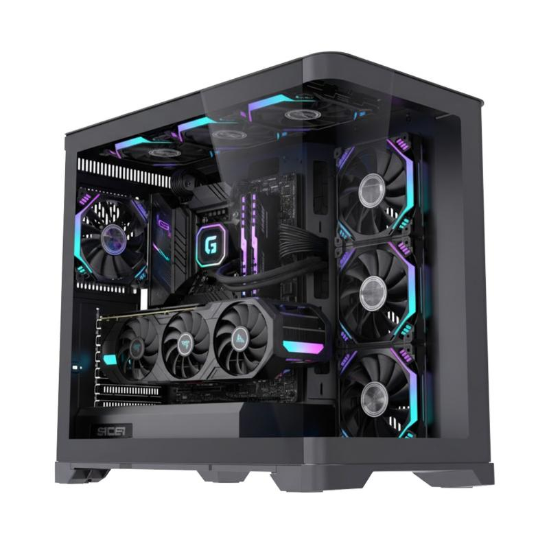 حافظة GAMEMAX LC-TM PLUS هي رمز للأداء والتصميم العصري. تتميز بتصميم Mid-Tower واسع يوفر مساحة لا تضاهى لتجميع أعتى المكونات. الواجهة الأمامية النظيفة واللوح الجانبي من الزجاج المقسّى يوفران عرضاً كاملاً للإضاءة الملونة الديناميكية لمراوح التبريد، مما يجعلها مثالية لعرض إبداعاتك. تصميمها يركز على تدفق هواء ممتاز مع خيارات تبريد سائل متقدمة، مما يضمن أفضل أداء تبريد لجهازك.